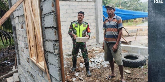 LensaKita.co.id — Menciptakan Sinergitas TNI bersama rakyat, Babinsa Koramil 06/Cerenti Kodim 0302/Inhu Pratu Teguh Mulya membantu warga membangun rumah milik salah satu
