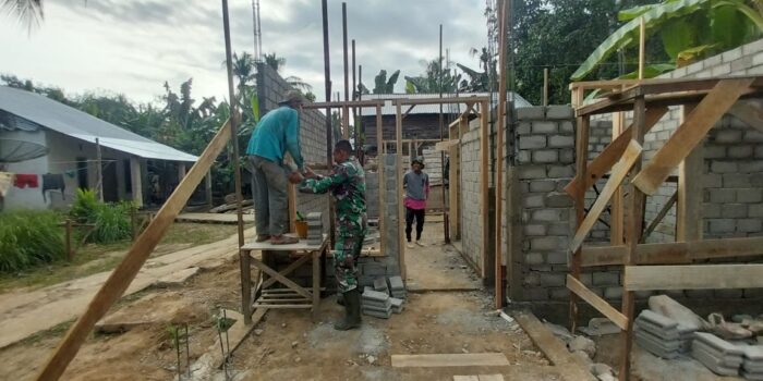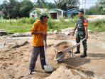 LensaKita.co.id — Menciptakan Sinergitas TNI bersama rakyat, Babinsa Koramil 06/Cerenti Kodim 0302/Inhu Sertu Juanda membantu warga membangun rumah millik salah satu warga