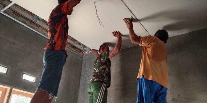 Satgas TMMD ke-127 Kodim 0301/Pekanbaru Laksanakan Pemasangan Plafon RTLH Ibu Anismar