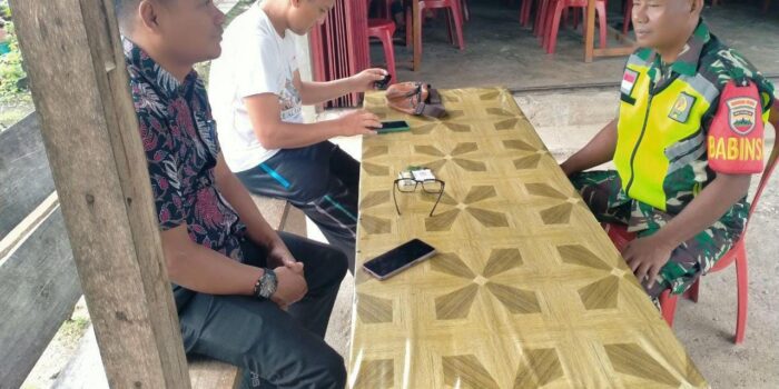 LensaKita.co.id — Salah satu langkah untuk mengatasi kesulitan masyarakat, Babinsa Koramil 06/Cerenti Komsos bersama warga Desa Binaan bertempat di depan warung warga
