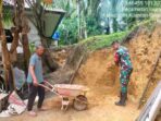 LensaKita.co.id — Babinsa Desa Pasar Inuman Pratu Teguh Mulya bantu warganya mengambil tanah untuk pengisian pondasi dapur milik salah satu warga yang