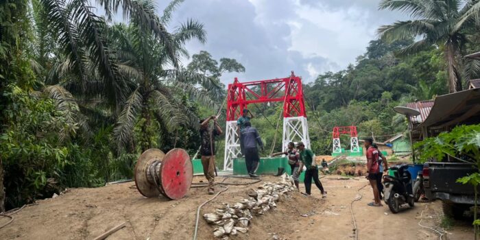 LensaKita.co.id — Anggota TNI yang tergabung dalam Pembangunan Jembatan Gantung Garuda Sungai Langsat Bejibaku Percepat penyelesaian pengerjaan Jembatan Gantung Garuda yang terletak