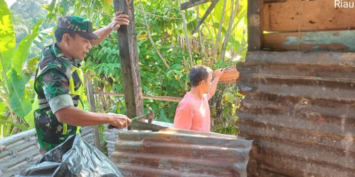 Peduli Warga Binaan, Babinsa Koramil 06/Cerenti Renovasi Rumah Warga