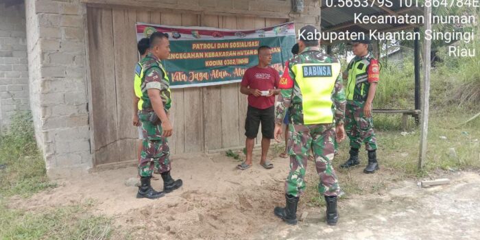 LensaKita.co.id — Patroli sudah menjadi kegiatan rutin yang dilaksanakan oleh anggota Koramil 06/Cerenti Kodim 0302/Inhu untuk mencegah terjadinya kebakaran hutan dan lahan