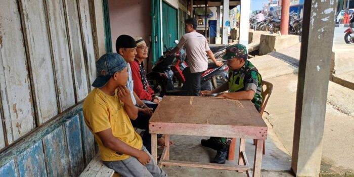 LensaKita.co.id — Babinsa Koramil 06/Cerenti Kodim 0302/Inhu Koptu M. Soleh melaksanakan kegiatan Komunikasi Sosial (Komsos) dengan masyarakat warga binaan, bertempat di Warung