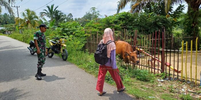LensaKita.co.id — Antisipasi penyebaran Penyakit mulut dan kuku (PMK) Babinsa Koramil 06/Cerenti Serka Efison melaksanakan pengecekan pada peternak sapi, kegiatan dilaksanakan di