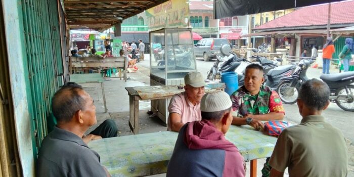 LensaKita.co.id — Babinsa Koramil 06/Cerenti Koptu Junedi melaksanakan komsos dan mengontrol harga sembako di Pasar wilayah binaan Kelurahan Pasar Cerenti Kecematan Cerenti