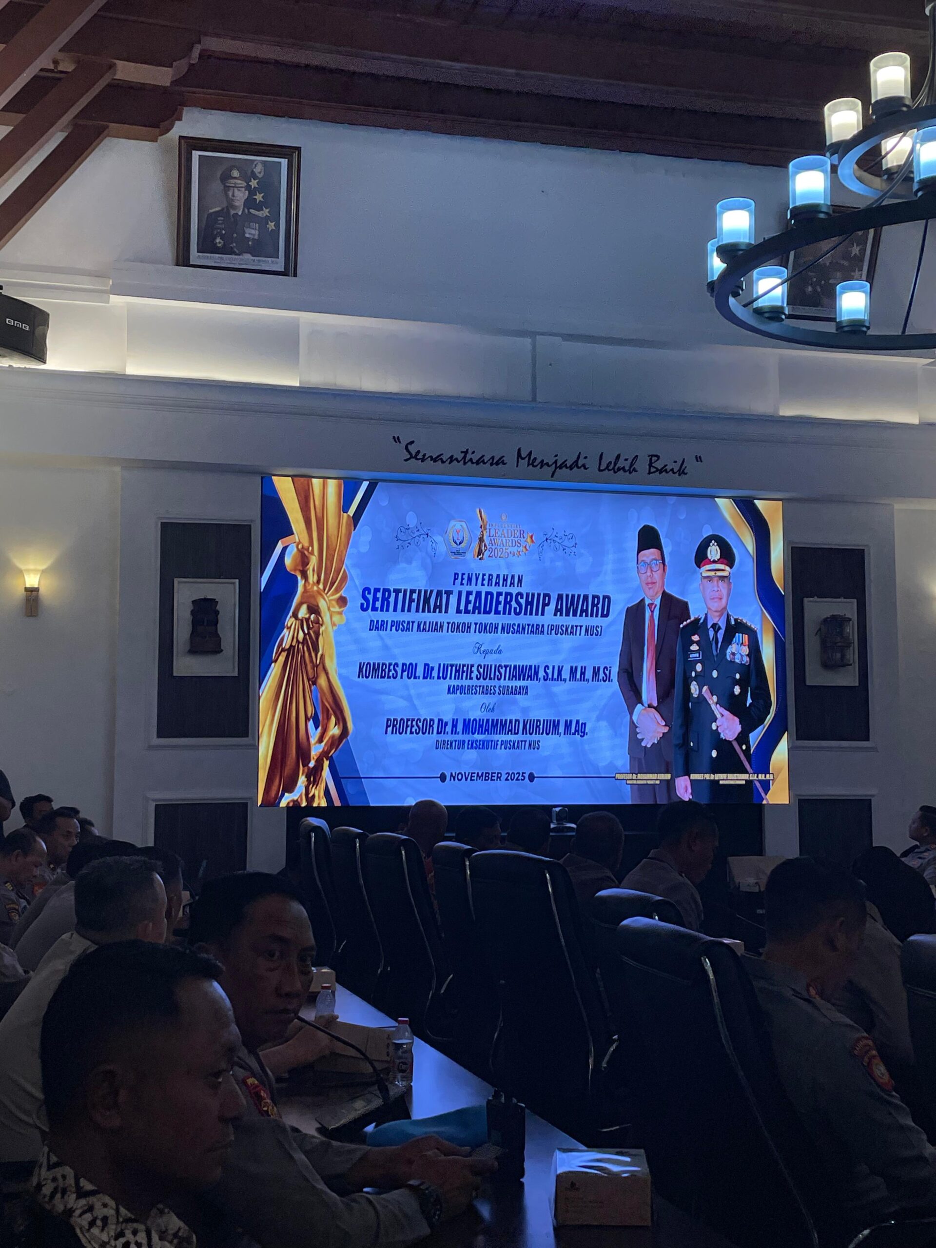 Penghargaan bergengsi ini diserahkan langsung oleh Direktur PUSKAT, Prof. H. Mohammad Kurjum, M.Ag., dalam acara yang digelar di Ruang Aula Mapolrestabes Surabaya, Jumat (14/11/2025).