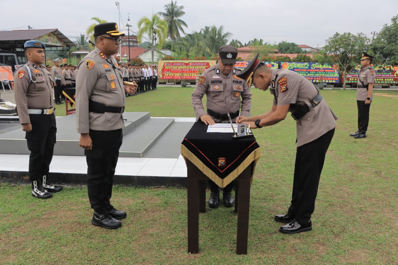 Upacara Sertijab dipimpin langsung oleh Kapolres Kampar AKBP Boby Putra Ramadhan S dengan dihadiri oleh PJU Polres Kampar, Kapolsek jajaran, Pama Polres, personel Polres Kampar, ASN, dan Bhayangkari.