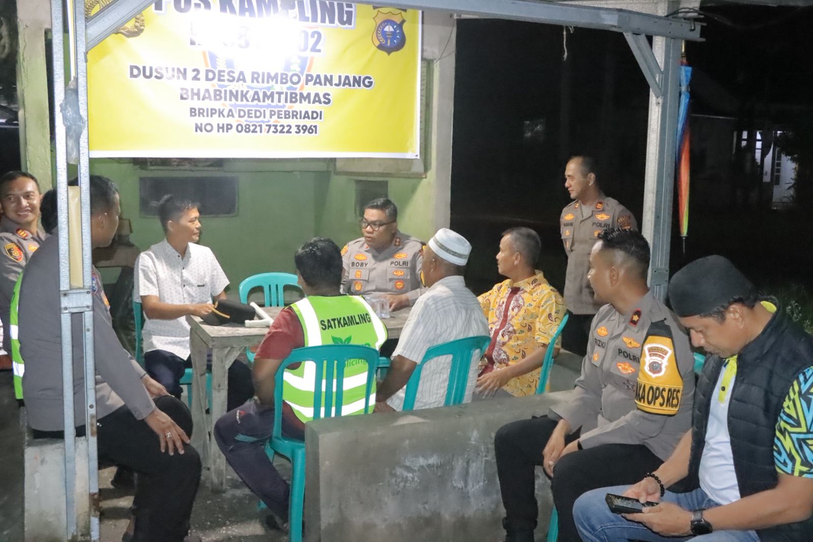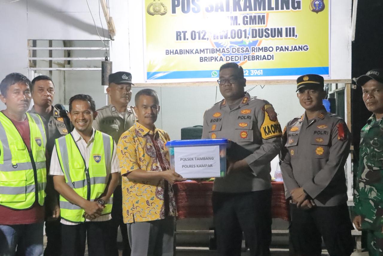 Kegiatan yang dilaksanakan pada Sabtu (27/12/2025) malam ini, diawali dengan kunjungan Kapolres Kampar dan PJU Polres Kampar ke Pos Sat Kamling Jl .Kamboja Perumahan Shanon regency RT 08 RW 02 DUSUN 02 Desa Rimbo Panjang Kec. Tambang Kab. Kampar, dan Pos Satkamling Perumahan Graha Mutiara Mandiri RT 012 RW.001 Dusun III Desa Rimbo Panjang, Kec. Tambang, Kampar.