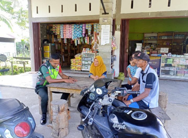 Keakraban tersebut terlihat saat Babinsa Pratu Reki Gunawan duduk bersama dengan beberapa orang warga masyarakat di sebuah warung.