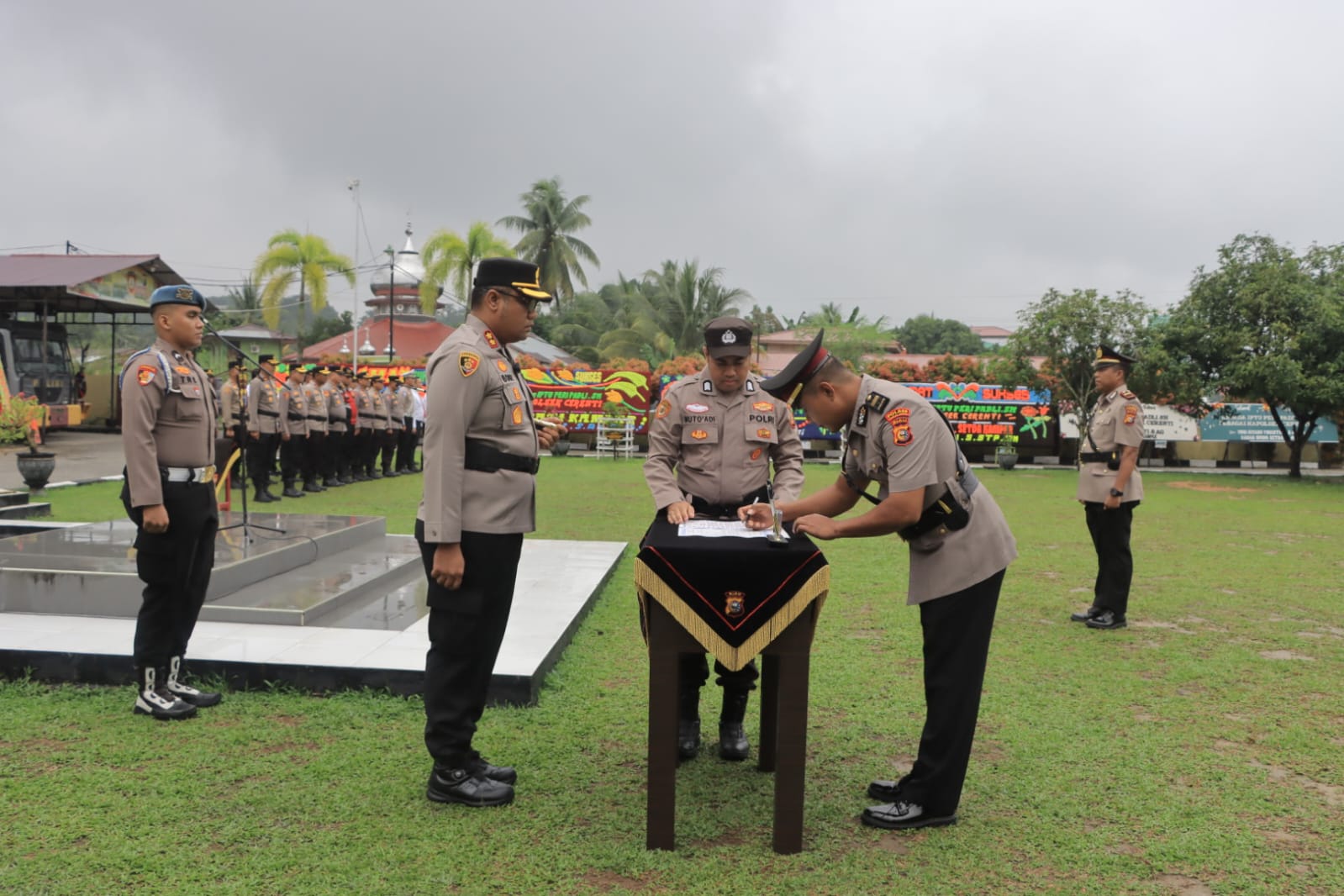Kepada IPTU Sulistiyono yang menjabat sebagai Kapolsek Perhentian Raja, saya ucapkan selamat atas kepercayaan yang diberikan oleh pimpinan kepada saudara. Agar segera menyesuaikan dengan dinamika kerja yang baru, ciptakan terobosan kreatif, gagasan, ide, dan inovasi ke depan yang lebih maju, dan segera lakukan pembenahan ke dalam, terutama kinerja seluruh anggota, sehingga ada perubahan yang lebih baik dalam pelaksanaan tugas.