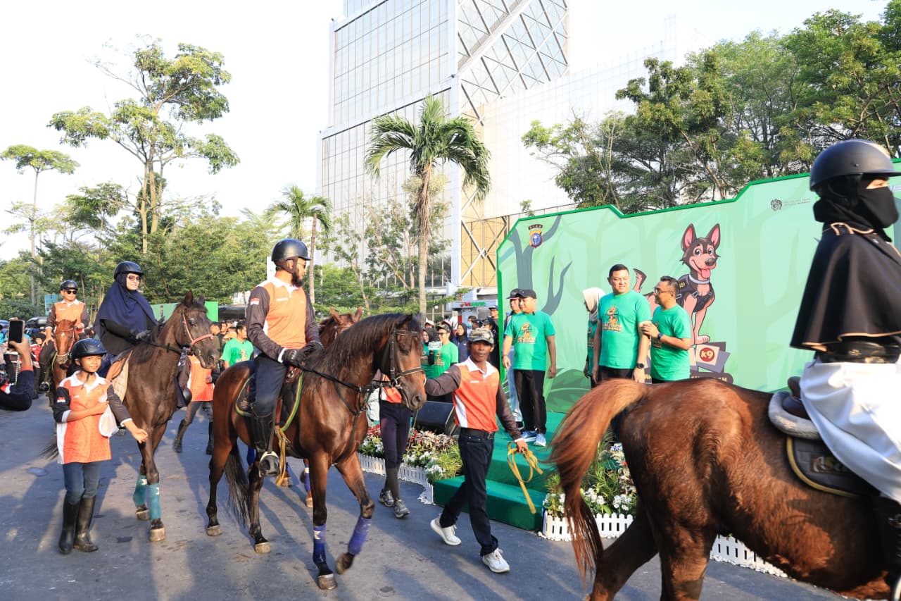 LensaKita.co.id — Kepolisian Daerah (Polda) Riau menggelar kegiatan Pet Parade untuk mengenang Reno, anjing pelacak tim K9 Direktorat Samapta Polda Riau, di kawasan Car Free Day Jalan Cut Nyak Dien, Kota Pekanbaru, Propinsi Riau, Minggu pagi (1/2/2026).