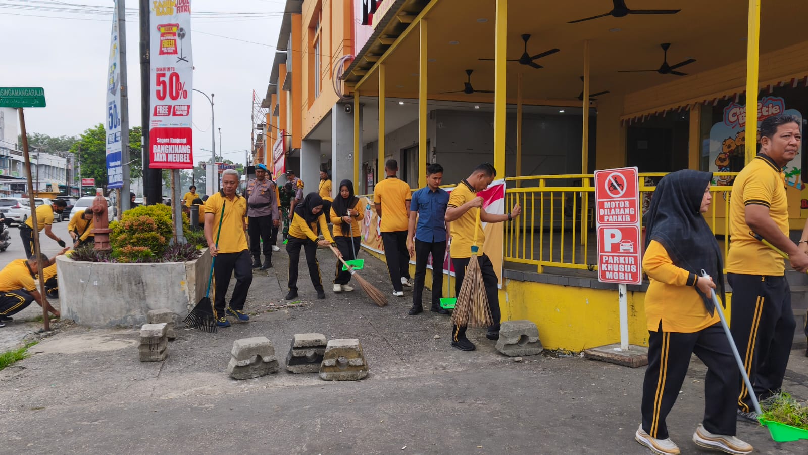 Selanjutnya, dengan semangat gotong royong, seluruh peserta kegiatan membersihkan area Plaza Ramayana Bangkinang, mulai dari menyapu, mengumpulkan sampah, hingga menata lingkungan sekitar.
