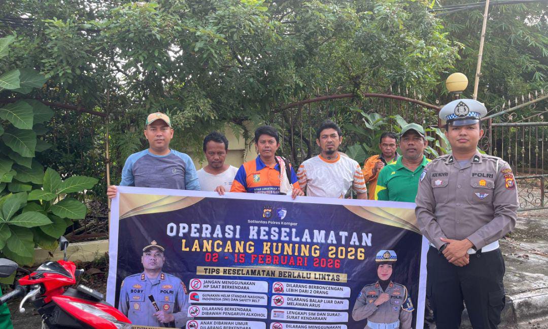 LensaKita.co.id — Satlantas Polres Kampar terus berupaya meningkatkan kesadaran masyarakat akan pentingnya keselamatan berlalu lintas melalui kegiatan sosialisasi Operasi Keselamatan Lancang Kuning 2026 yang dilaksanakan di wilayah Kecamatan Bangkinang, kabupaten Kampar Propinsi Riau,Pada Sabtu (07/02/2026).