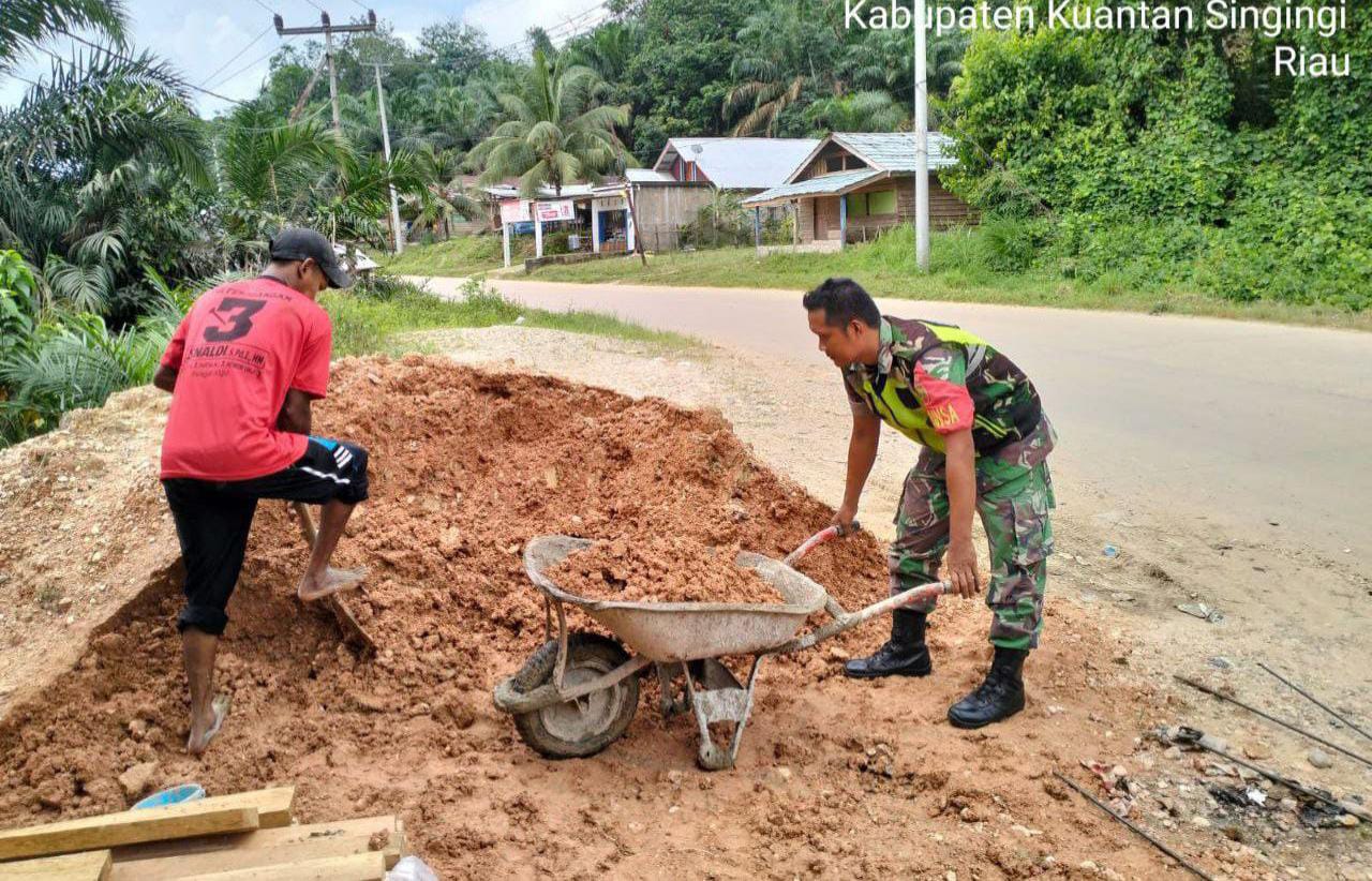 LensaKita.co.id — Terciptanya Sinergitas TNI bersama rakyat, Babinsa Desa Koto Inuman Kecamatan Inuman Koramil 06/Cerenti Kodim 0302/Inhu Koptu Junedi membantu warga membangun dapur rumah Pak Ali salah satu warga Desa Kelurahan Koto Peraku Kecamatan Cerenti, Kabupaten Kuantan, Propinsi Riau,Pada siang. Jum’at (13/02/2026).