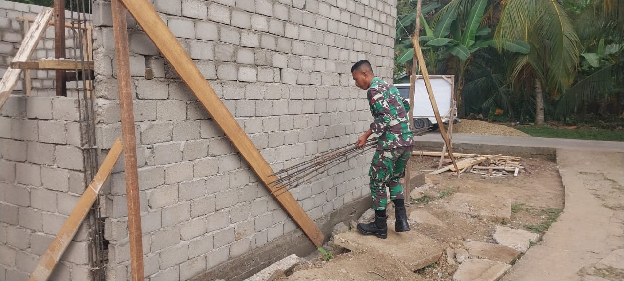 Kali ini, personel Satgas melaksanakan kegiatan pemasangan Batako lanjutan pada rumah tidak layak huni (RTLH) milik warga di lokasi sasaran TMMD bersama dengan warga.