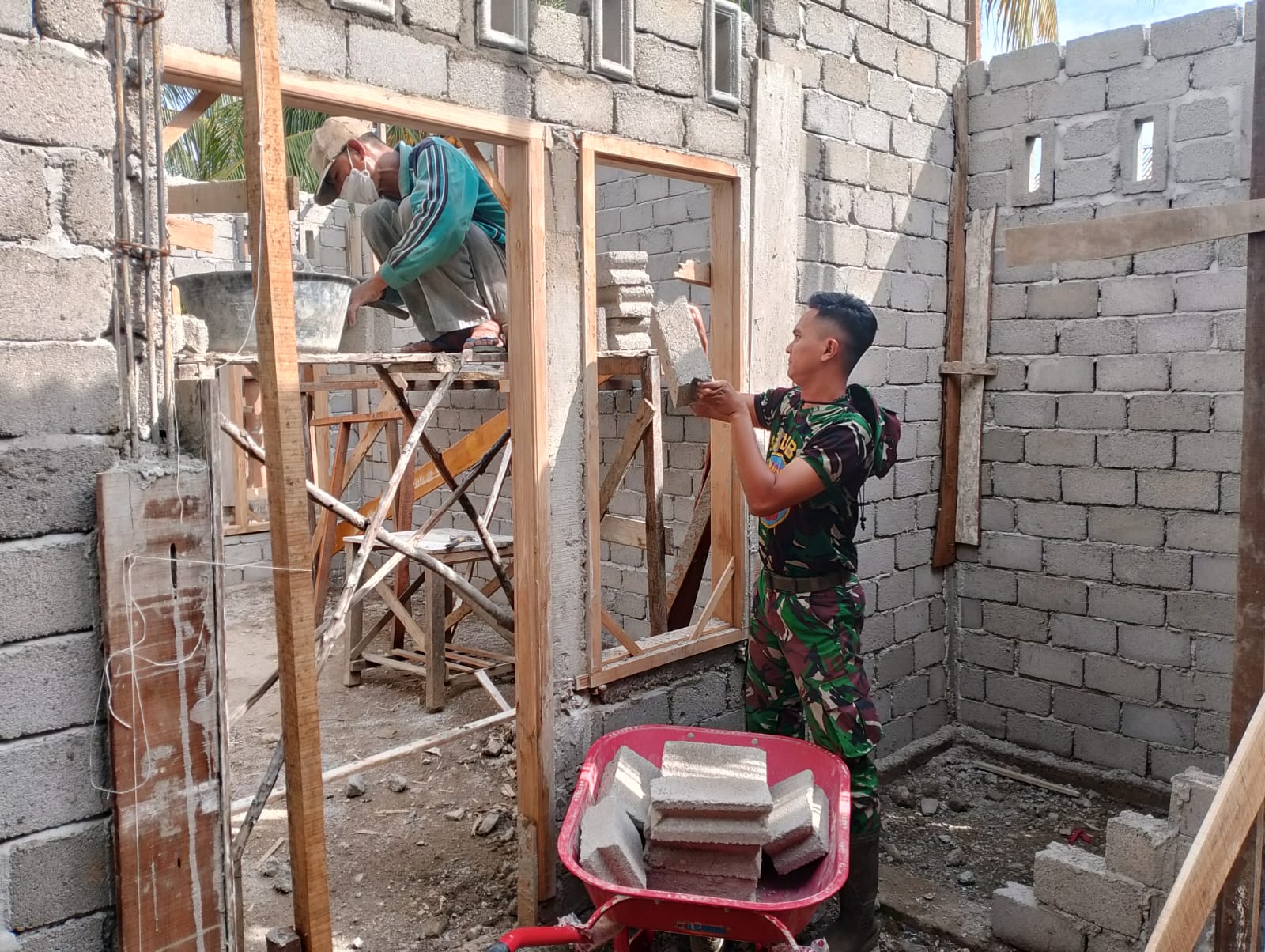Hal ini menunjukkan komitmen dalam mempercepat pembangunan di wilayah pedesaan. Pada tahap ini, personel Satgas yang salah satunya merupakan Babinsa Koramil 06/Cerenti melaksanakan kegiatan pemasangan Batako lanjutan pada rumah tidak layak huni (RTLH) yang hampir rampung milik salah satu warga di lokasi sasaran TMMD.