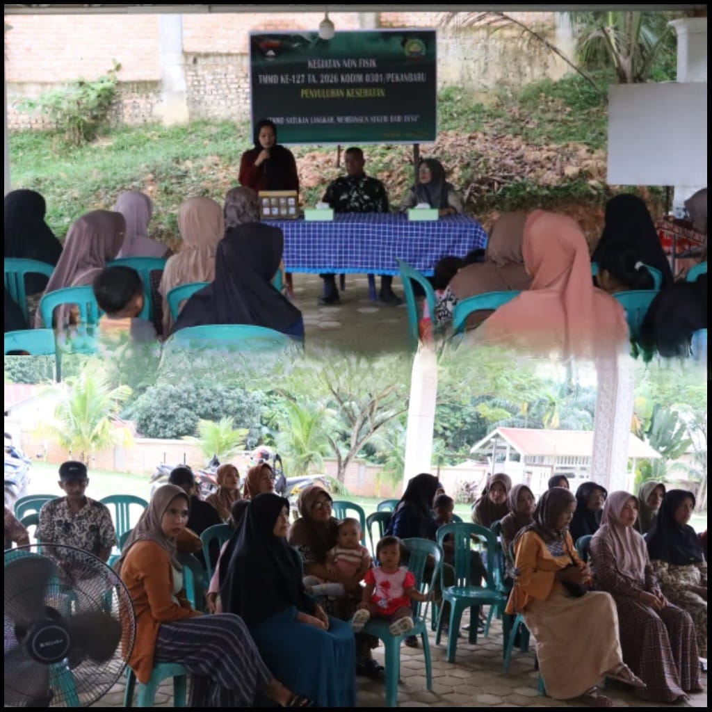 Pekanbaru(lensakita.com) – Selain melaksanakan pembangunan fisik, Satuan Tugas (Satgas) TMMD ke-127 Kodim 0301/Pekanbaru juga terus mengoptimalkan kegiatan non fisik sebagai upaya membangun kualitas sumber daya manusia di lokasi TMMD. Salah satu kegiatan yang dilaksanakan adalah penyuluhan kesehatan bagi masyarakat di Kelurahan Tuah Negeri, Kecamatan Tenayan Raya, Kota Pekanbaru, Sabtu (21/2/2026).