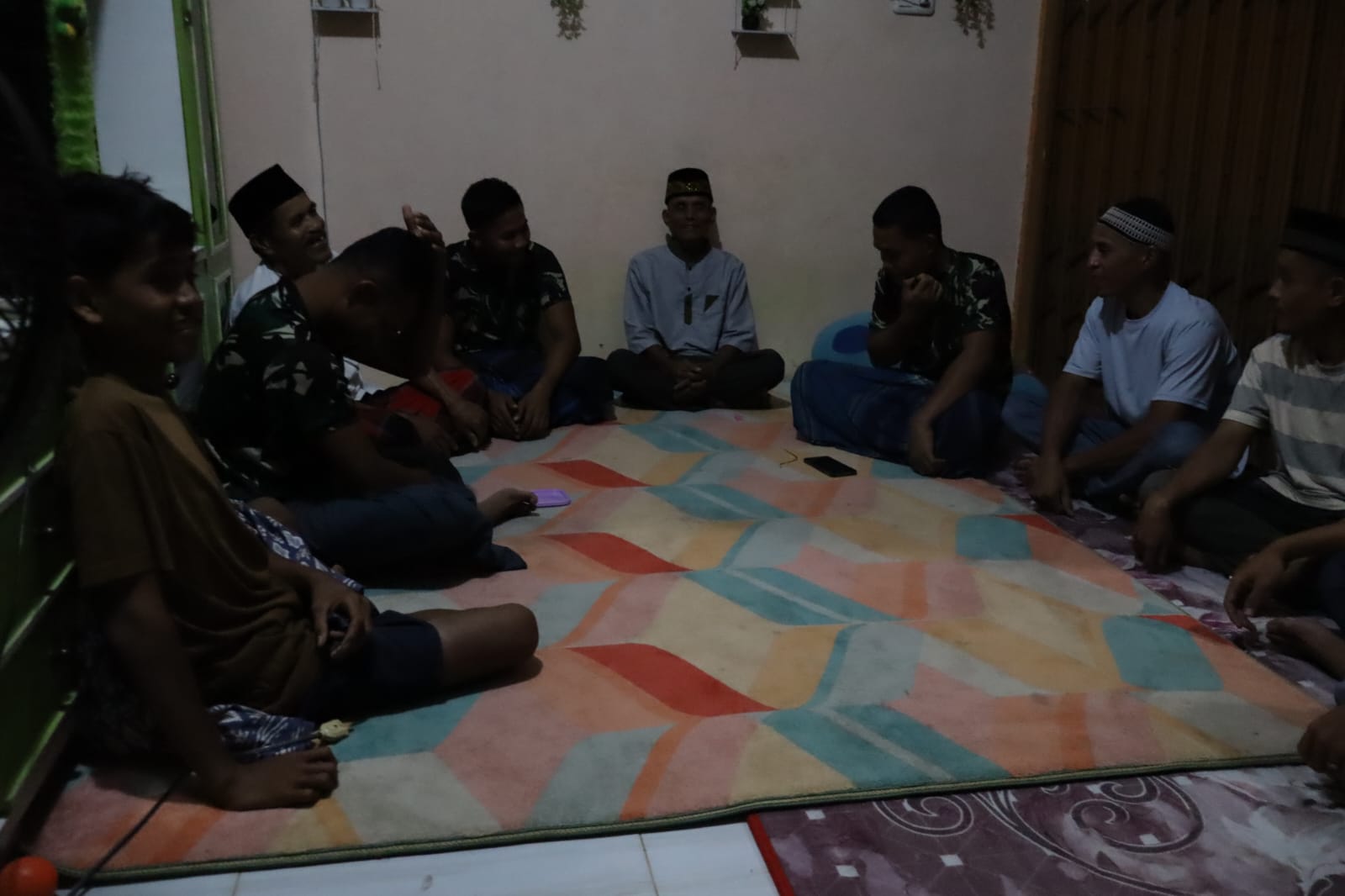 Di tengah suasana Ramadhan 1447 H, pertemuan berlangsung penuh keakraban. Tidak ada sekat antara prajurit TNI dan masyarakat. Obrolan mengalir santai namun penuh makna. Dalam kesempatan tersebut, Satgas TMMD bersama warga membahas situasi keamanan dan ketertiban masyarakat (kamtibmas), khususnya selama bulan suci Ramadhan.