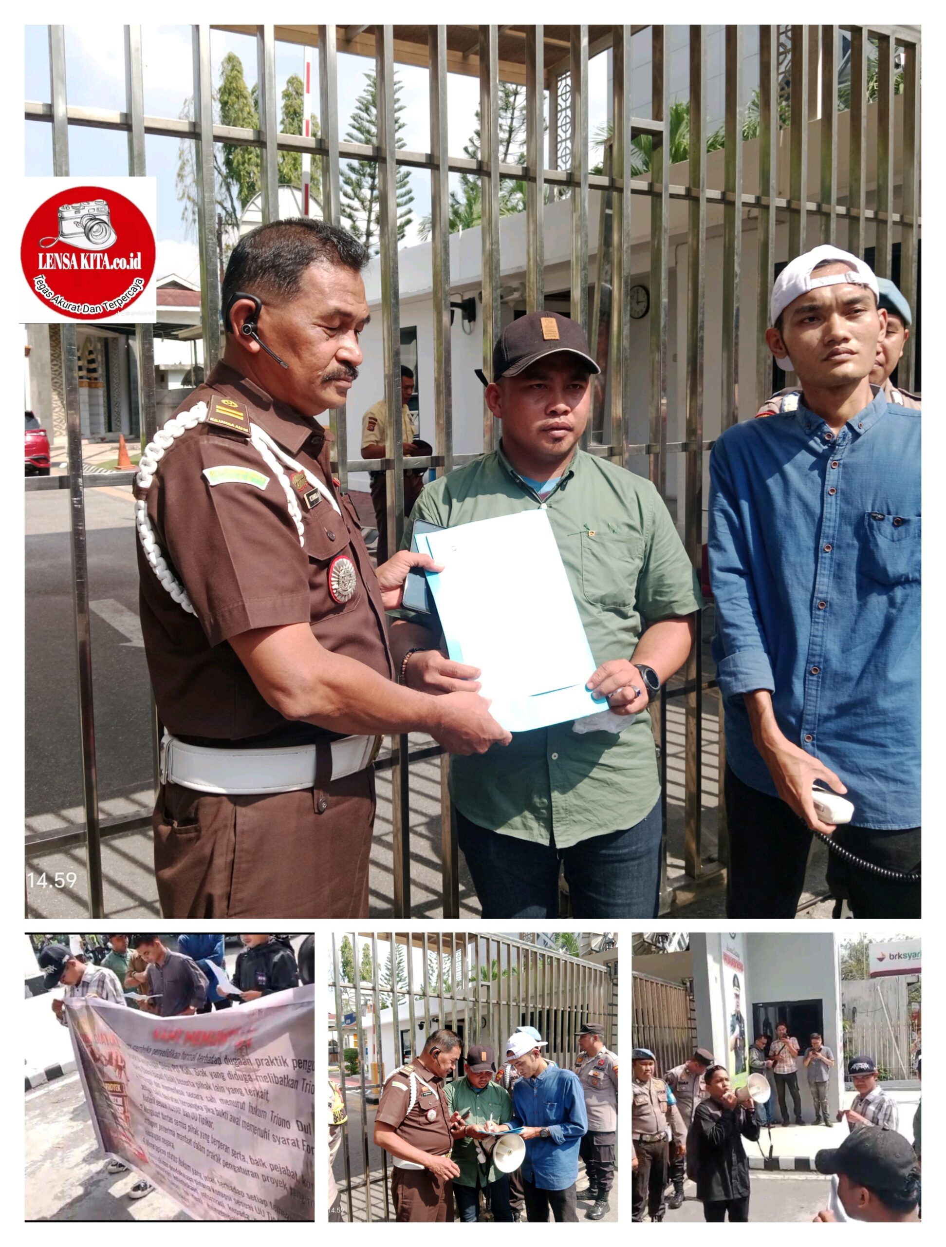 Dalam aksi tersebut, massa mahasiswa menyampaikan orasi secara terbuka dengan membawa dokumen tuntutan serta meminta aparat penegak hukum segera menindaklanjuti dugaan praktik yang berpotensi merugikan keuangan negara.