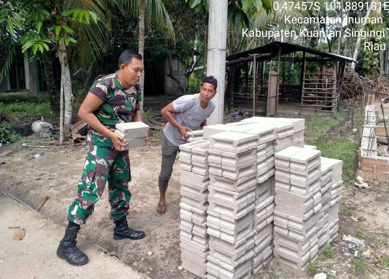 LensaKita.co.id — Menciptakan Sinergitas TNI bersama rakyat, Babinsa Koramil 06/Cerenti Kodim 0302/Inhu Koptu M. Soleh membantu warga membangun rumah millik salah satu warga Desa Banjar Nan Tigo Kecamatan Inuman, Kabupaten Kuantan Singingi, Propinsi, Riau. Jum’at (27/02/2026).