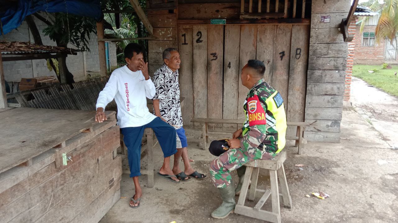 LensaKita.co.id — Babinsa Koramil 06/Cerenti Koptu M. Soleh menyempatkan diri komunikasi sosial (komsos) dengan warga di sela waktu istirahat warga Desa Banjar Nan Tigo, Kecamatan Cerenti Kabupaten Kuantan Singingi,Riau.pada Minggu (08/03/2026).