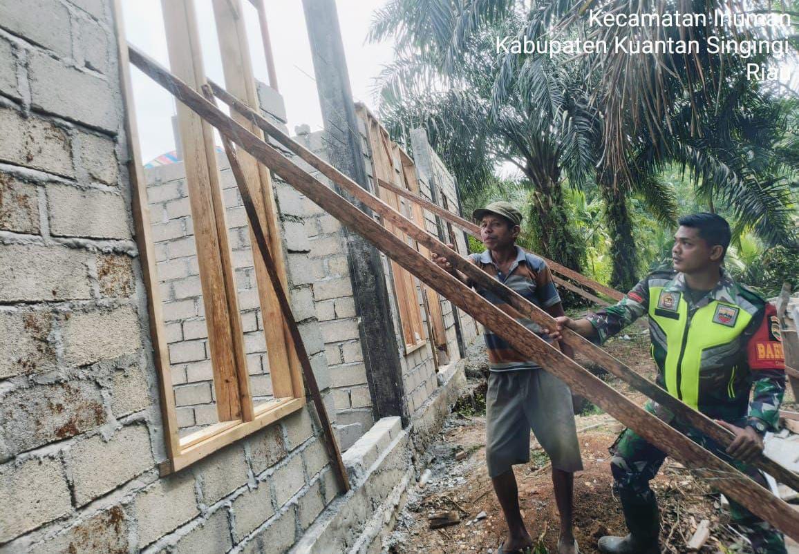 LensaKita.co.id — Menciptakan Sinergitas TNI bersama rakyat, Babinsa Koramil 06/Cerenti Kodim 0302/Inhu Pratu Teguh Mulya membantu warga membangun rumah milik salah satu warga Desa Kampung Baru Koto Inuman Inuman Kecamatan Inuman, Kabupaten Kuansing, Propinsi Riau.Pada Selasa (10/03/2026).