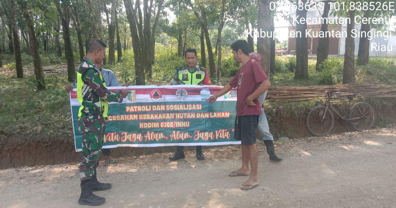 LensaKita.co.id — Babinsa Koramil 06/Cerenti Kodim 0302/Inhu Serda Jama Anur bersama rekan-rekan melaksanakan kegiatan Sosialisasi pencegahan kebakaran hutan dan lahan (Karhutla) di wilayah Desa Pulau Jambu Kecamatan Cerenti Kabupaten Kuantan Singingi, Propinsi Riau. Rabu (25/03/2026).