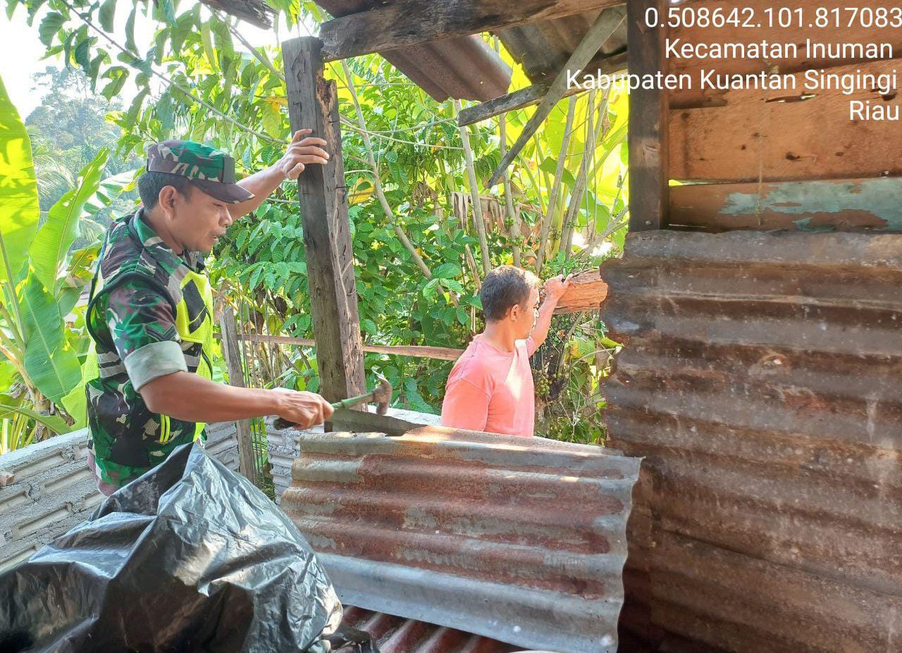 LensaKita.co.id — Keakraban kepada warga binaan merupakan tugas pokok Babinsa, salah satunya yaitu dengan Gotong royong seperti halnya yang dilakukan Babinsa Koramil 06/Cerenti Serka Efison melaksanakan gotong royong bersama masyarakat membantu renovasi rumah warga kurang mampu di Desa Desa Koto Inuman Kecamatan Inuman, Kabupaten Kuantan Singingi, Propinsi Riau. Kamis (02/04/2026).