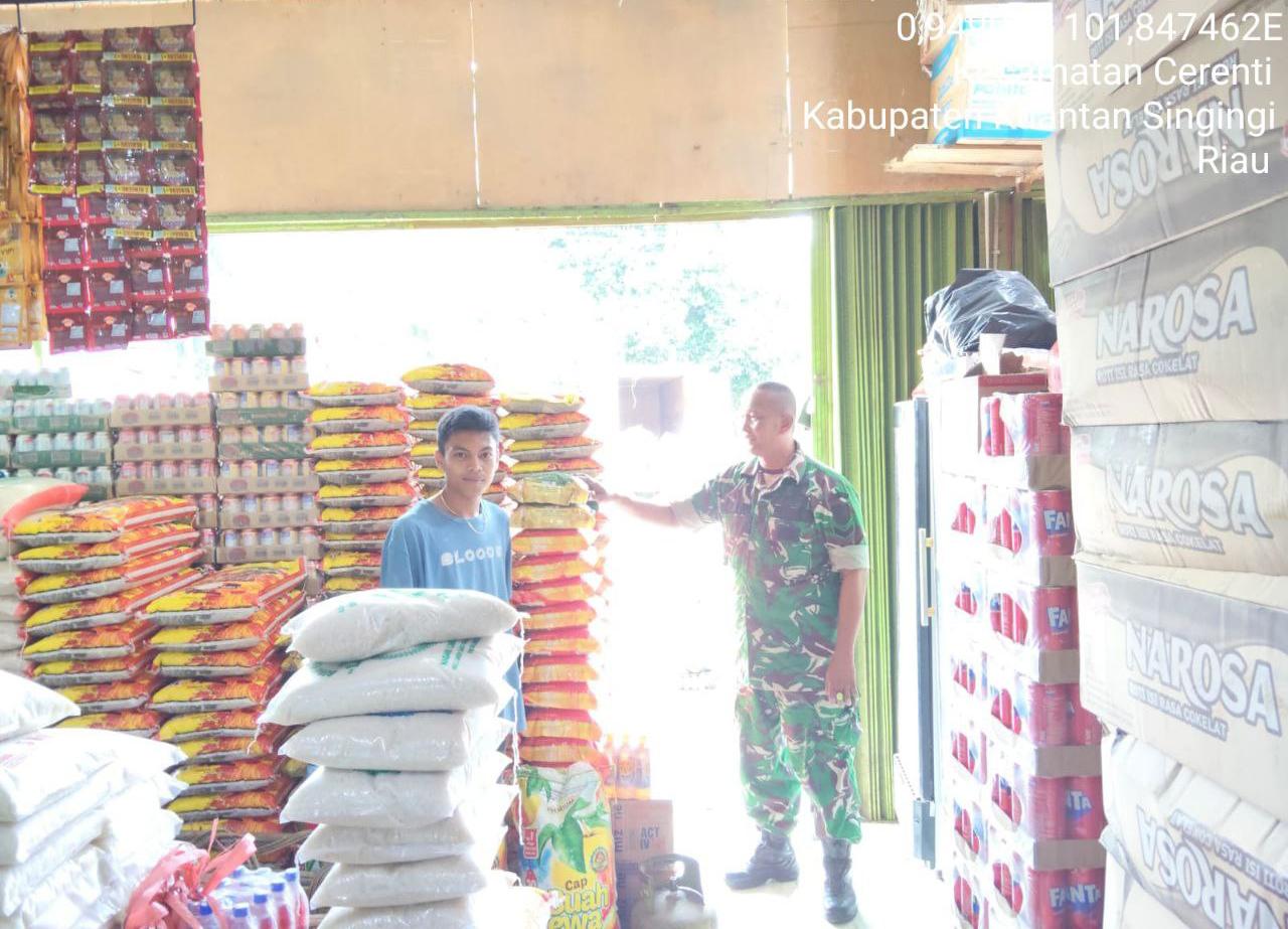 LensaKita.co.id — Untuk memastikan harga sembako tetap stabil Babinsa Koramil 06/Cerenti Kodim 0302/Inhu Sertu Juanda melaksanakan kegiatan pengecekan secara langsung harga sembako di wilayah binaan Desa Tanjung Medan, Kecamatan Cerenti, Kabupaten Kuantan Singingi, Propinsi Riau, Senin (20/04/2026).