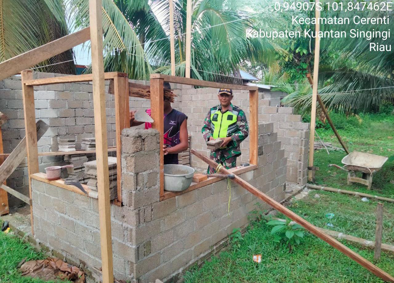 LensaKita.co.id — Menciptakan Sinergitas TNI bersama rakyat, Babinsa Koramil 06/Cerenti Kodim 0302/Inhu Sertu Juanda membantu warga membangun rumah millik salah satu warga Desa Kompe Berangin Kecamatan Cerenti, Kabupaten Kuantan Singingi, Propinsi Riau. Selasa (28/04/2026).