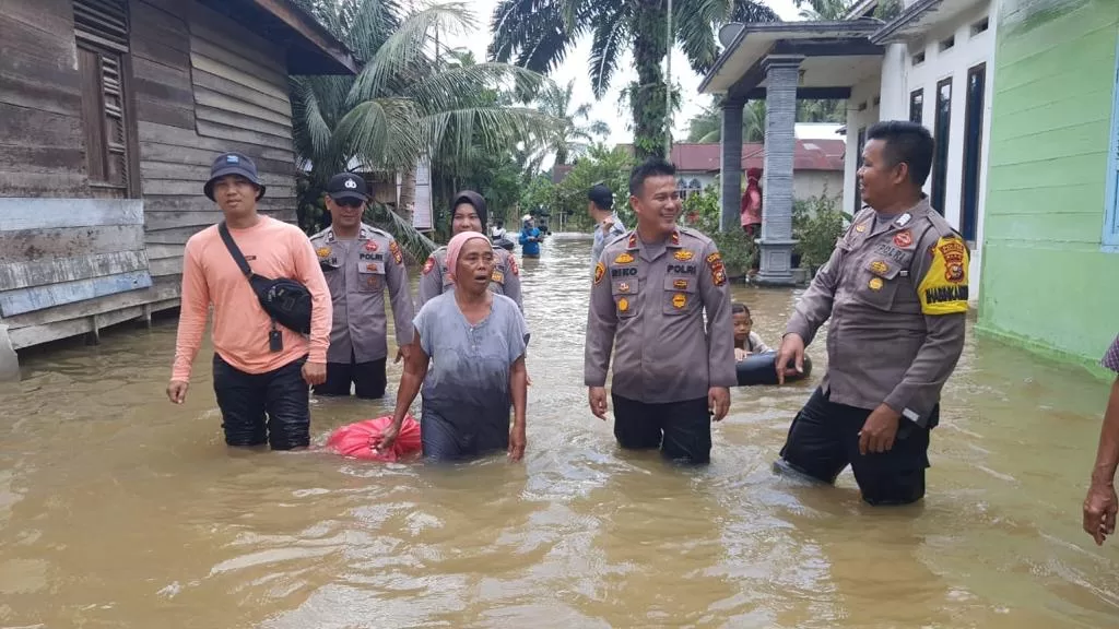 “Air menggenangi pemukiman warga sekitar 100 KK dengan ketinggian air +- 60 cm di Dsn I dan Dsn II Desa Kampung Pinang Kec Perhentian Raja,” ungkapnya.