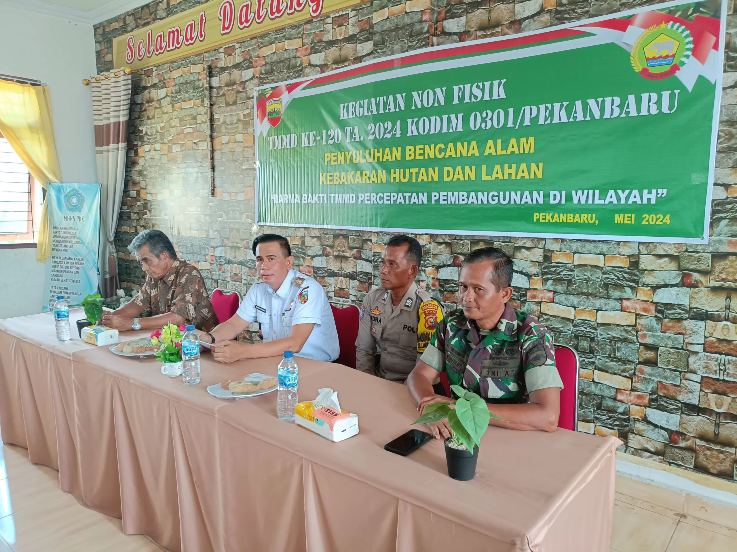 LensaKita.co.id — Kegiatan Non Fisik, TMMD ke 120 Kodim 0301/Pekanbaru mengadakan Penyuluhan Bencana Alam dan Kebakaran Hutan dan Lahan, bertempat di Aula Kantor Lurah Meranti Pandak Kec Rumbai kota Pekanbaru. Jl. Yos Sudarso. Rabu, 15 Mei 2024.