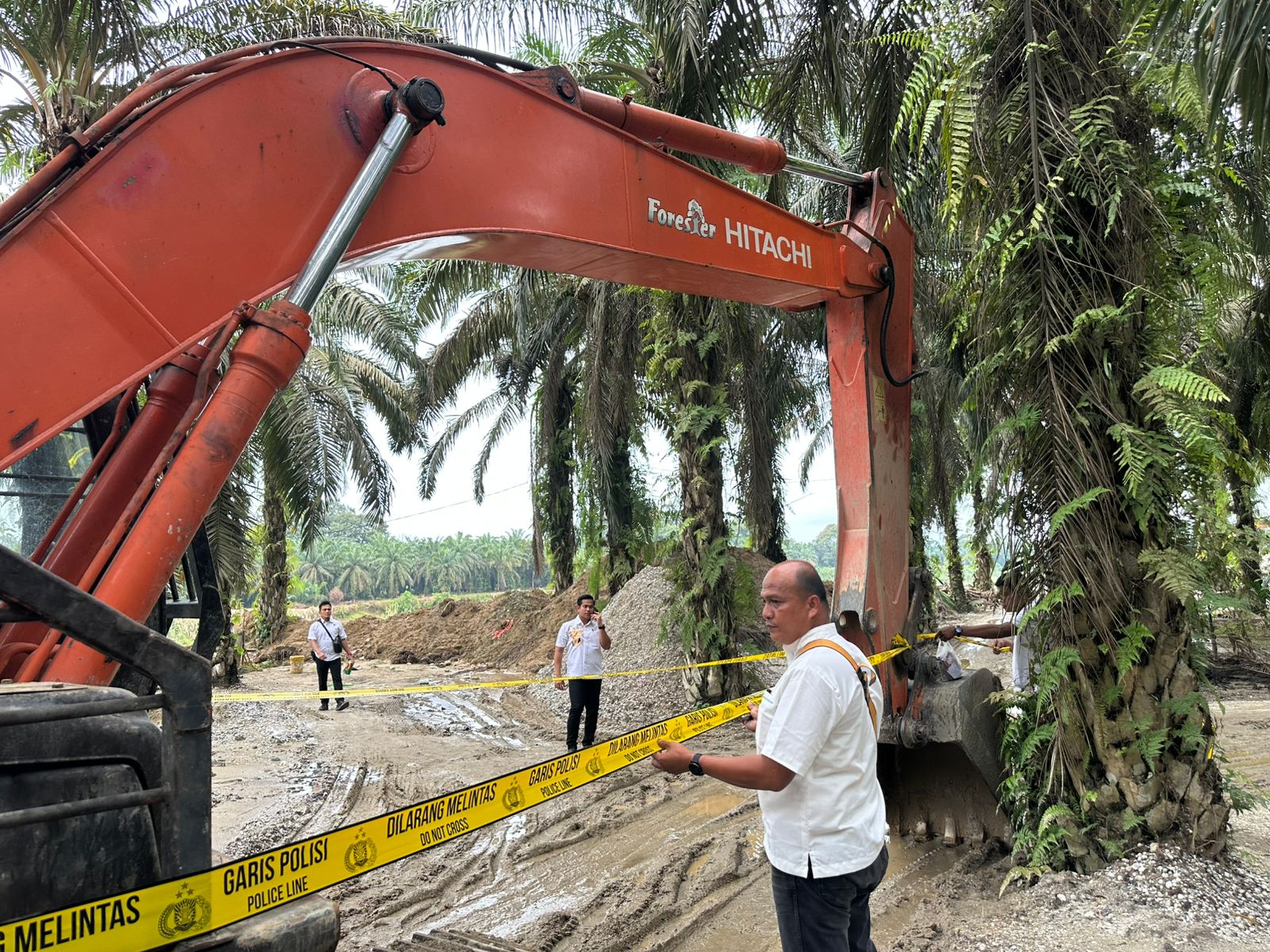 “Jarak lokasi dengan jalan Aspal lebih kurang 500 meter sehingga pada saat petugas berhasil masuk ke lokasi, pekerja dan orang yang ada di lokasi melarikan diri meninggalkan lokasi penambangan,”terang AKP Gian.