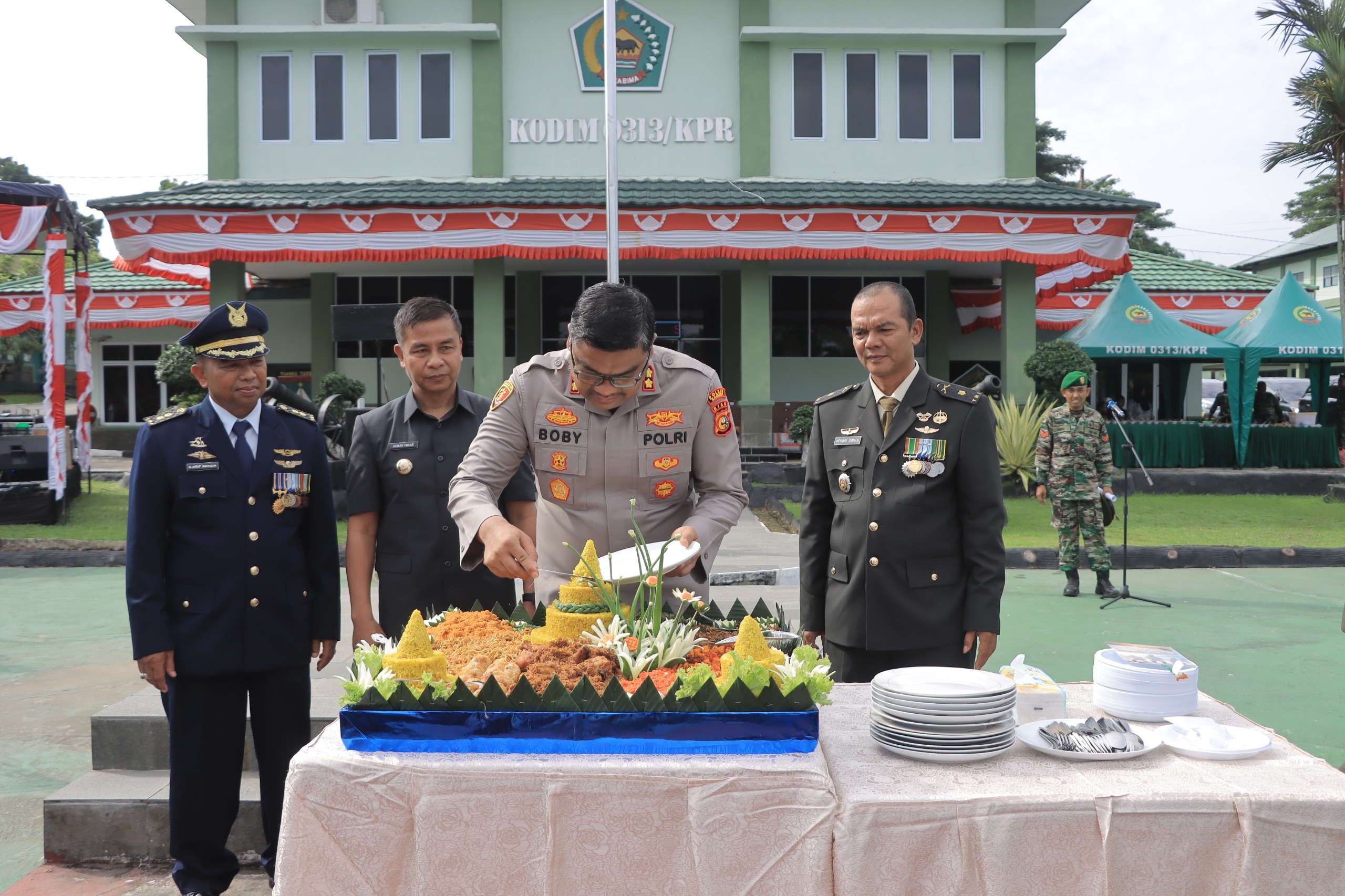 Kedatangan rombongan Polres Kampar disambut hangat oleh Kasdim 0313/KPR Mayor Inf Hendri Donan, yang mewakili Dandim 0313/KPR.